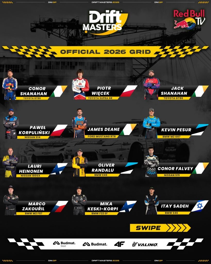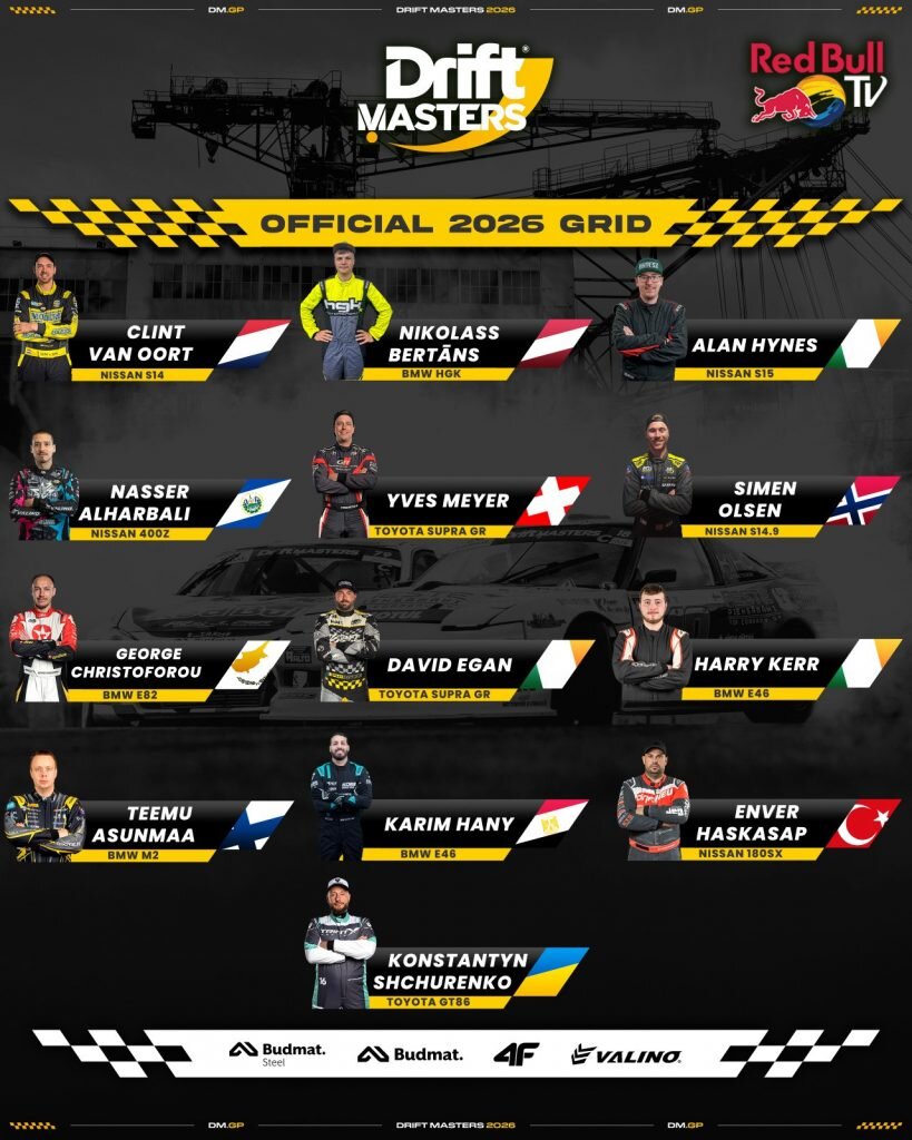 “Drift Masters” čempionāts ir oficiāli izziņojis 2026. gada sezonas braucēju sastāvu. Šogad tas būs īpašs ne tikai ar spēcīgu dalībnieku sastāvu, bet arī ar to, ka Rīgas posms atzīmēs savu desmito jubileju – “Drift Masters” Rīgā notiks desmito reizi.