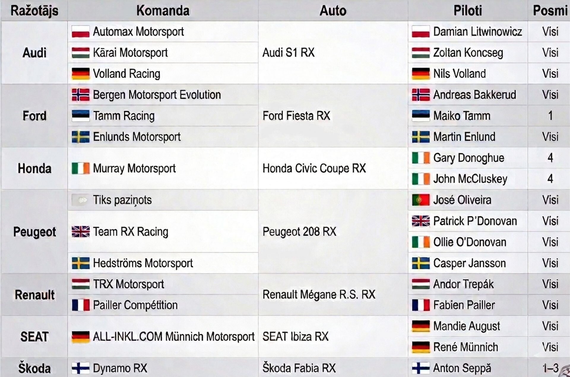 Šobrīd apstiprinātie “Euro RX1” sezonas dalībnieki: