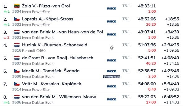 Jāpiebilst, ka lietuvietis Roks Baciuška šobrīd ir ļoti pārliecinošā vadībā “Stock” automobiļu klasē, bet Karolis Raišis ir līderpozīcijā vēsturisko Dakaras rallija mašīnu klasē “Classic”.