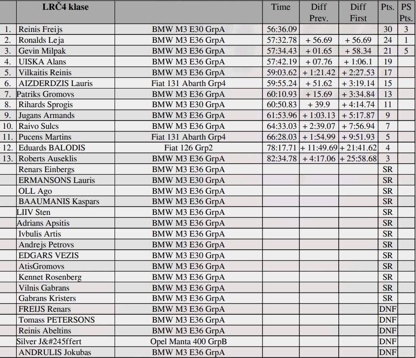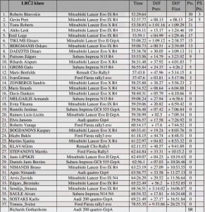 Ar solīdu pārsvaru LRČ4 pirmo vietu ieguva Reinis Frejs, kurš spēja izmantot konkurentu kļūdas. Atlikušās divas vietas uz pjedestāla tika dalītas starp četriem pilotiem. Otrā vieta Ronalds Leja, par mata tiesu (1.6 sekundēm) pārspējot Gevin Milpak. Teicams rallija sākums padevās Rihardam Sproģim. Turoties līderu pulciņā, viņam tomēr neizdevās sataupīt riepas uz viesiem ātrumposmiem un pieļautās kļūdas SS3 un SS5 liedza pacīnīties par godalgām.