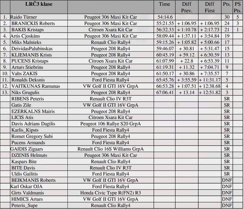Priekšpiedziņas klasē savu pārākumu turpināja demonstrēt Raido Turner. Šajās sacensībās viņš nomainīja spēkratu no ierastā “Rally4” uz “Peugeot 306 Maxi Kit Car”. Šajos apstākļos tieši “Kit Car” izradījās par galvastiesu pārāki, pārējos automobiļus atstājot ārpus goda pjedestāla.