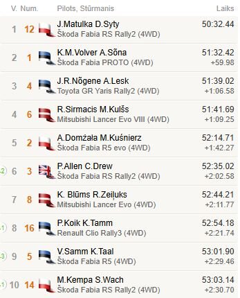 | 10 | A.Auniņš/R.Rūniks | Subaru Impreza | +6:55.31 |