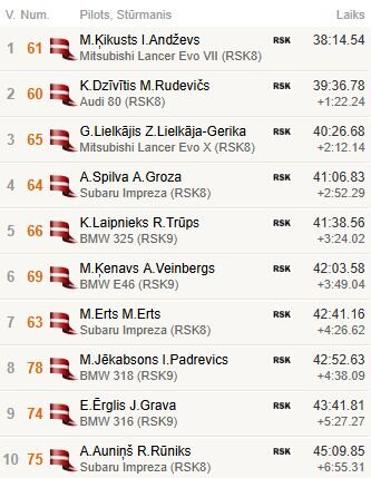 | 1 | M.Ķikusts/I.Andževs | Mitsubishi Lancer Evo VII | 38:14.54 |