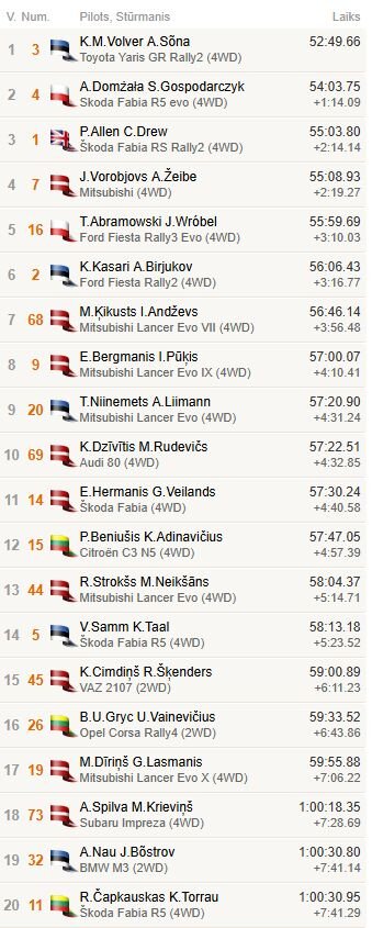 Volvers bija ātrākais pēdējos divos ātrumposmos un kļuva par rallija uzvarētāju. Latvijas ekipāžas šoreiz absolūtās ieskaites pirmajā trijniekā neiekļuva. Atpaliekot 1 minūti un 14 sekundes, otrajā vietā ierindojās polis Arons Domžala (“Škoda Fabia R5 evo”), bet vēl minūti zaudēja un trešo vietu guva Filips Alens (“Škoda Fabia RS Rally2”). Brits pēdējā dopā pazaudēja nepilnu minūti, lai gan pirms tam bija tikai sešas sekundes aiz Domžalas.