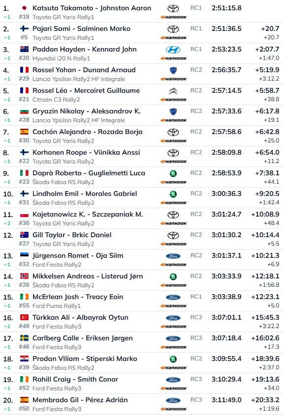 Otro vietu absolūtajā vērtējumā izcīnīja Pajari, kuram tas ir karjeras labākais rezultāts un trešais pjedestāls pēc kārtas. “Uzvara bija mūsu rokās, bet tā tika atņemta. Pēdējie ralliji ir bijuši pozitīvi un daudzsološi. Cerams, ka labākais vēl tikai priekšā,” rezumēja Pajari. Trešo vietu uz pjedestāla ieņēma veterāns Haidens Padons, nodrošinot “Hyundai” komandai vismaz kādu mierinājumu pēc Noivila izstāšanās.