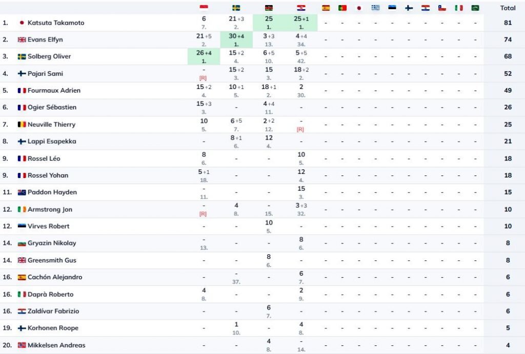 WRC kopvērtējums pirms 5. posma: