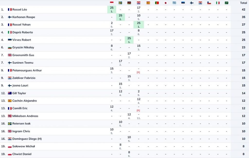 WRC2 kopvērtējums pirms 5. posma:
