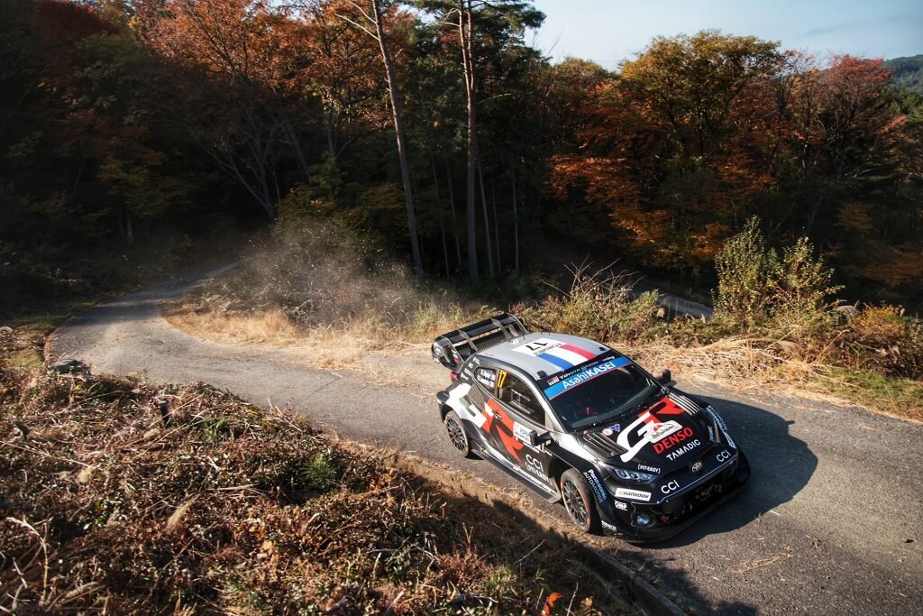 Pasaules rallija čempionāta Japānas posma trešajā dienā avāriju piedzīvoja mājinieks Takamoto Katsuta, kurš pirms tam atradās cīņā par uzvaru, savukārt tehniska ķibele lika izstāties Tjerī Noivilam. Šobrīd norisinās spraiga cīņa par pirmo vietu starp titula pretendentiem Sebastjēnu Ožjē un Elfinu Evansu.