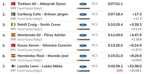 Pirmais pjedestāls karjerā šoreiz Rahilam, kurš uzrādīja stabilu sniegumu, savukārt nākamās vietas ieņēma piloti, kas savu karjeru pirms vairākiem gadiem uzsāka sacensībās Latvijā. Ceturto vietu ieņēma spānis Gils Membrado, kurš atguvās pēc riepu problēmām sestdienā, bet pirmo piecinieku noslēdza Kerems Kazazs, kuram visu ralliju bija grūtības atrast pārliecību par savu ātrumu.